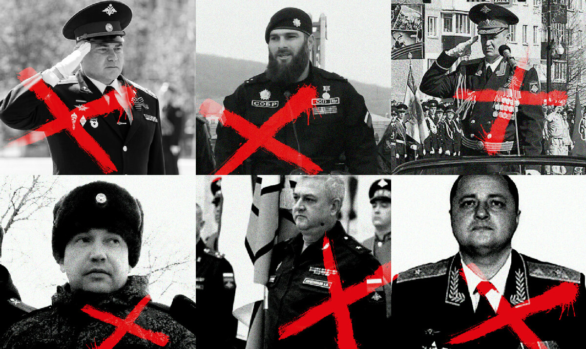 Журналист-расследователь Христо Грозев говорит о смерти шести генералов с российской стороны. Украинцы говорят еще о гибели чеченского генерал-майора Магомеда Тушаева.