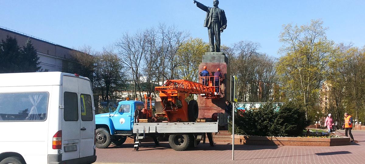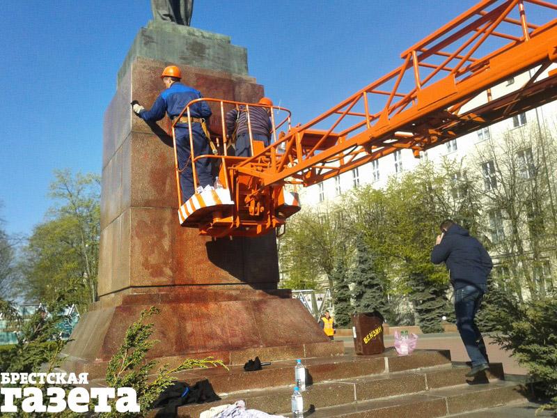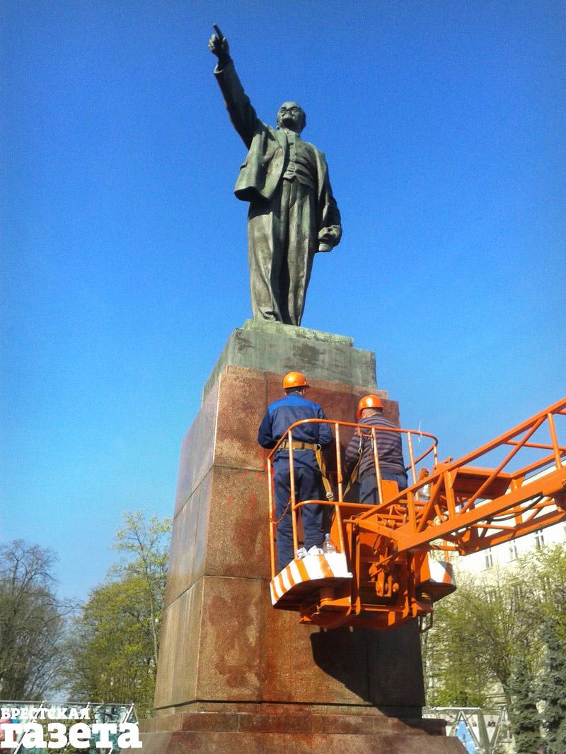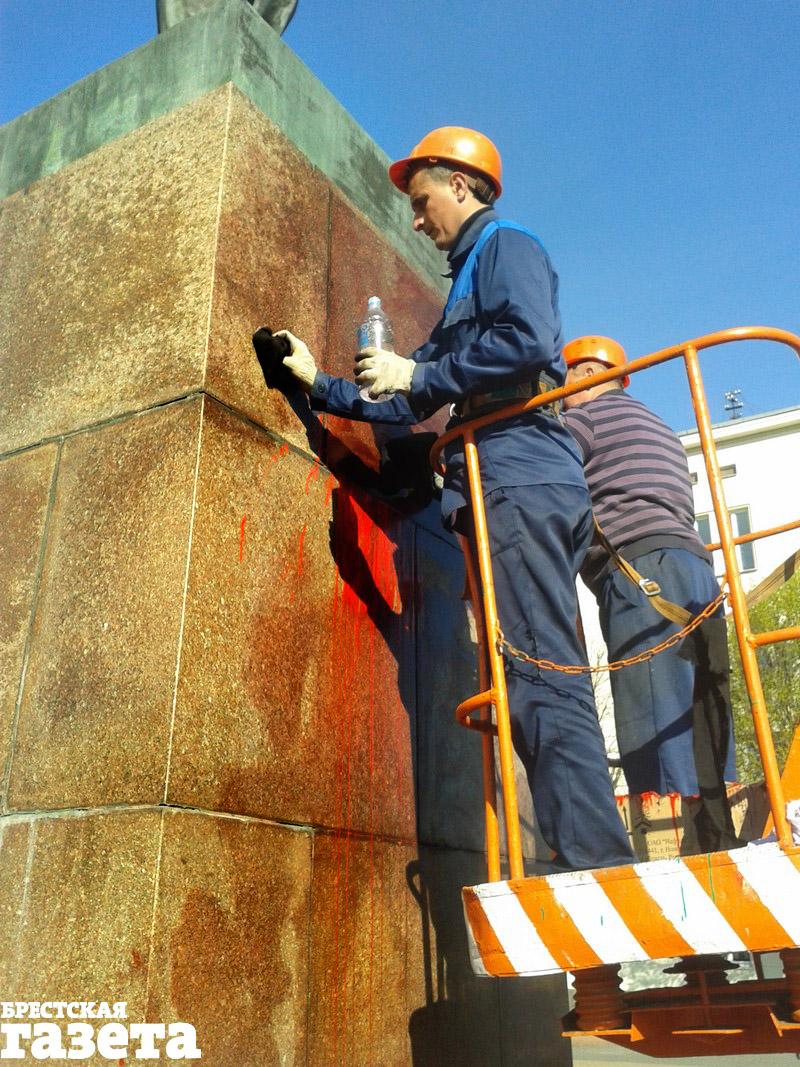 Сначала они отмыли от краски ступени, ведущие к постаменту. Потом, когда приехала машина Брестского ДЭП с вышкой, принялись очищать сам постамент с надписью «Ленин».