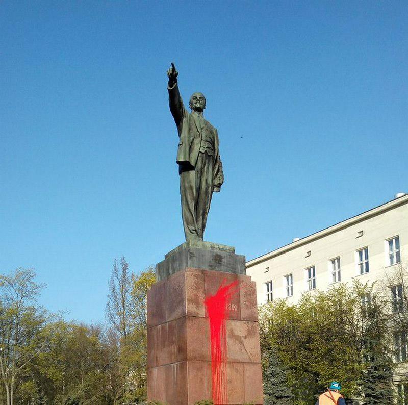 Памятник Ленину на главной площади Бреста облили красной краской