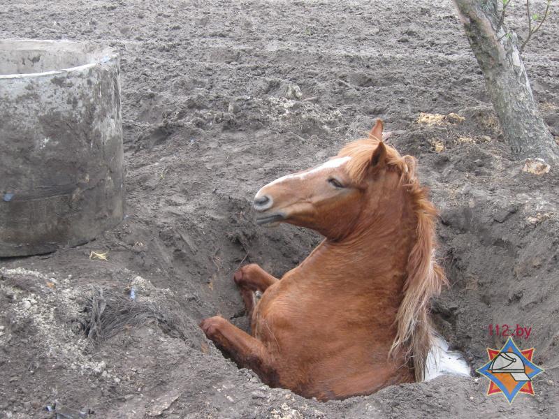 Спасатели обвязали лошадь рукавами, а затем при помощи фронтального погрузчика подняли животное на поверхность, сообщает Брестское областное управление МЧС.