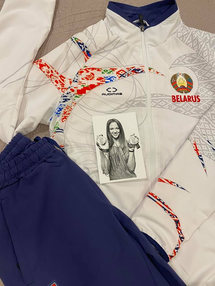Спортивный костюм Александры Герасимени с церемонии награждения на Олимпиаде в Рио-2016 и фотокарточка с автографом выставлены на международный аукцион.