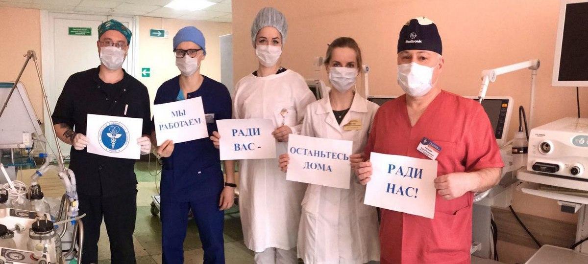 «Мы остаемся на работе, чтобы помочь вам — Вы останьтесь дома, чтобы помочь нам!» — с такими табличками фотографируется медперсонал из разных уголков Беларуси, чтобы привлечь внимание к проблеме распространения коронавируса.