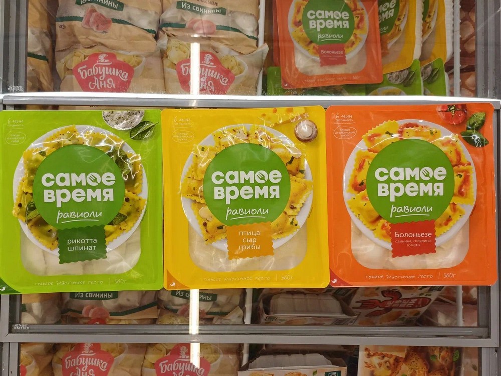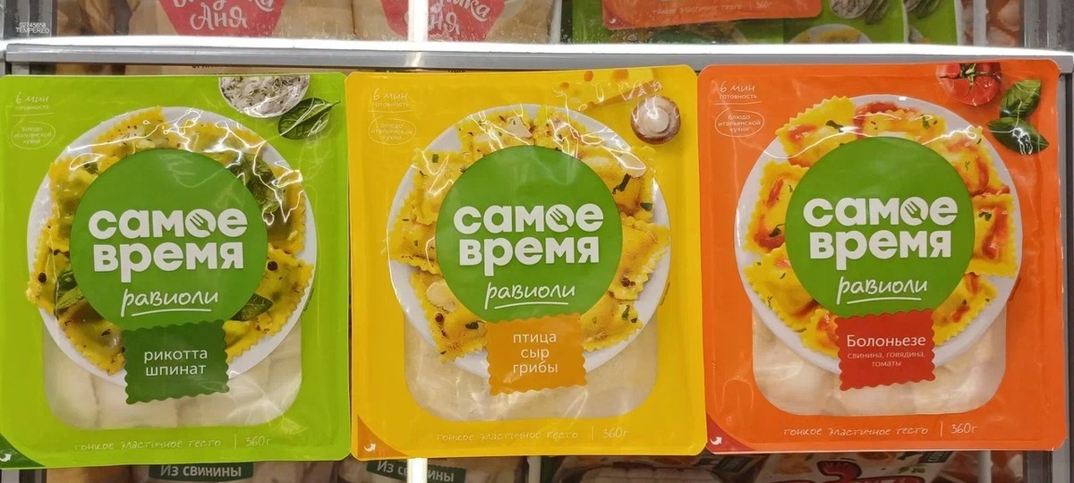 «В магазинах равиоли „Самое время“ представлены упаковками весом по 360 г. Их можно найти рядом с замороженными пельменями, варениками и блинчиками», — рассказали в пресс-службе компании.