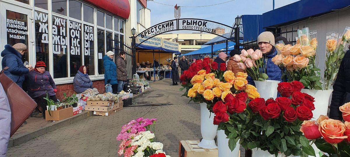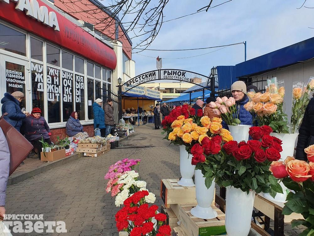 В предпраздничную пятницу 6 марта на рынке было намного больше людей, чем в обычный будний день. Вероятно, увеличение числа покупателей на «колхозке» связано еще и с тем, что рядом развернулась настоящая цветочная ярмарка. Она одна из самых больших в городе.