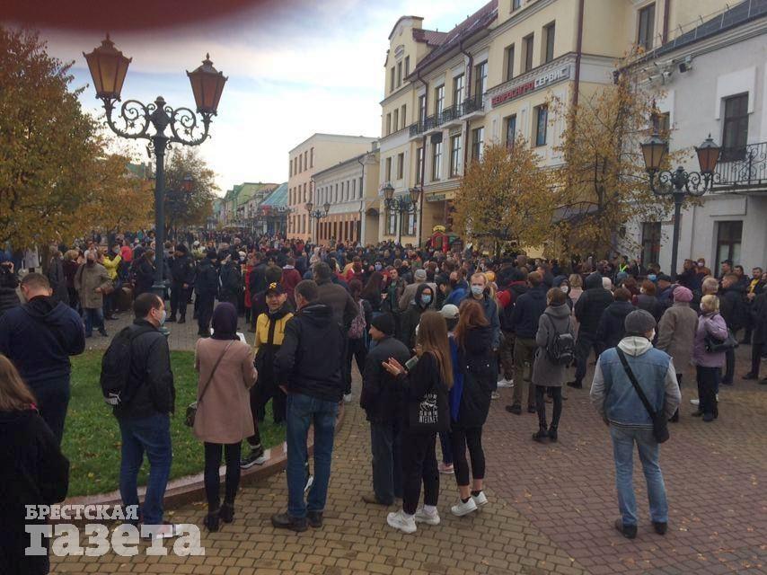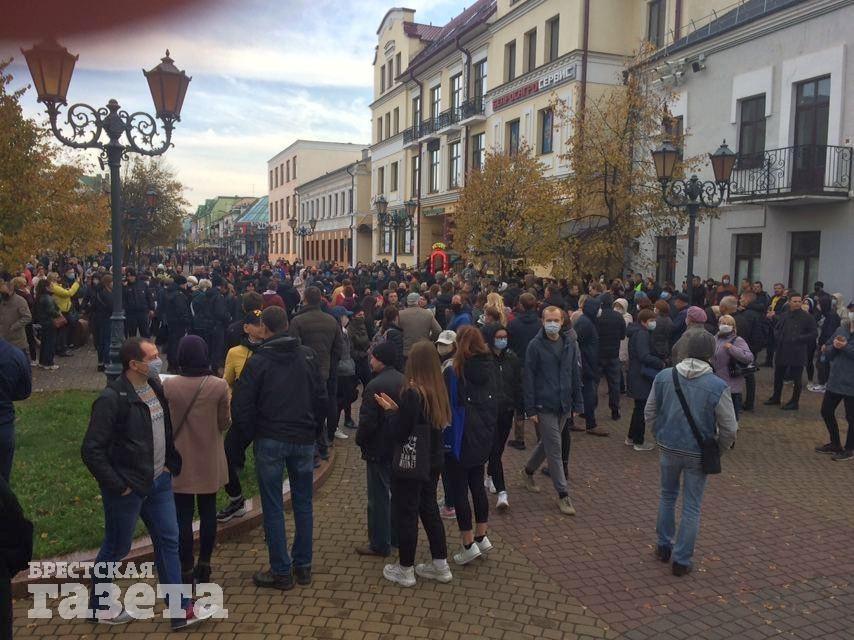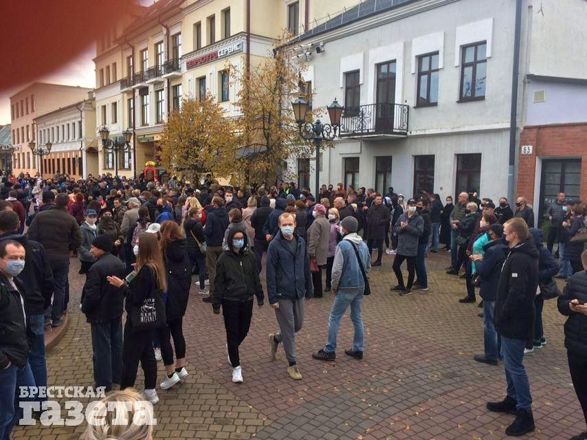 В Бресте протест бело-красно-белый в микрорайонах, где выстроились цепи солидарности.