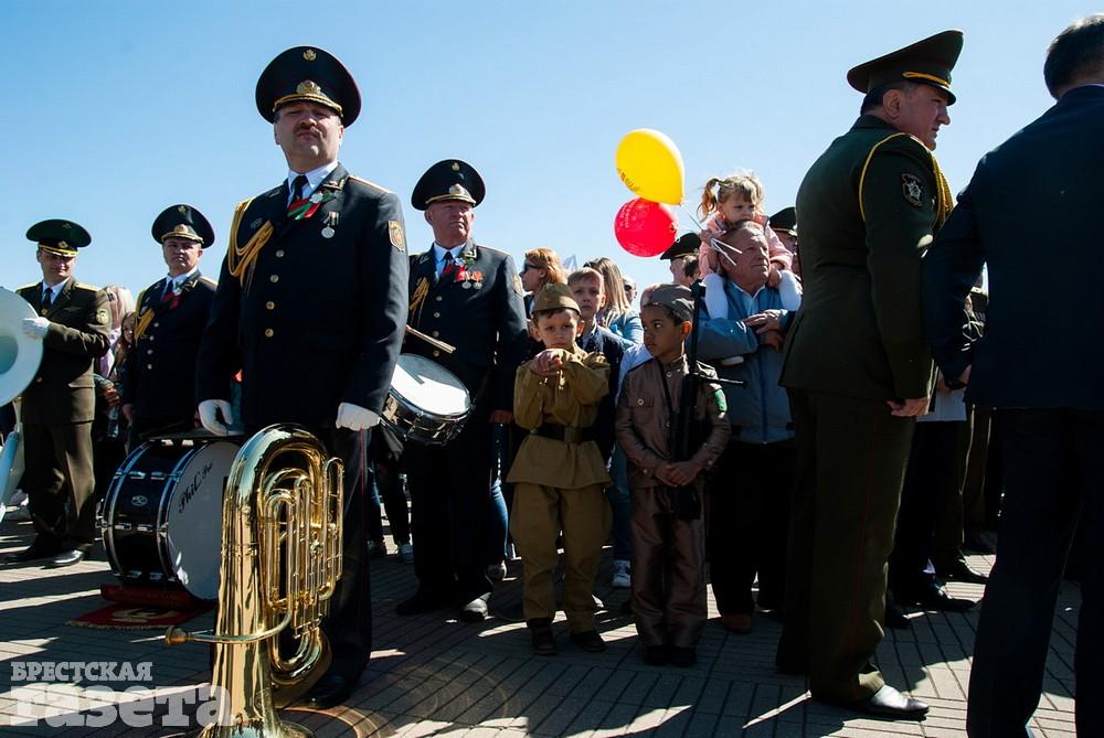 Руководство области и города, ветераны, представители общественных организаций, трудовых коллективов, молодежь 9 Мая традиционно организованной колонной проследовали к Брестской крепости. Вместе с брестчанами в мемориальный комплекс пришли гости города. К Вечному огню и плитам некрополя возложили цветы, память павших на войне почтили минутой молчания.