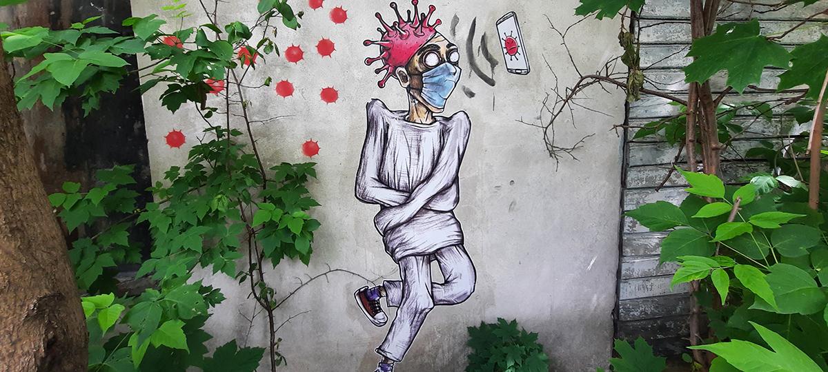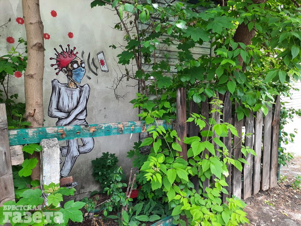 Фотофакт. В центре Бреста есть стрит-арт на тему коронавируса. И его пока что не убрали