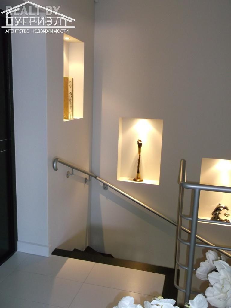 Двухуровневая квартира с четырьмя комнатами расположена на улице Стафеева, на последних этажах современной высотки.