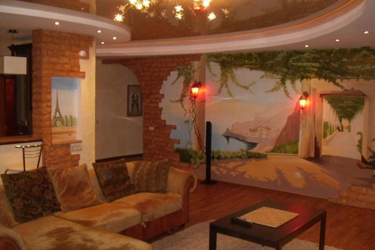 В квартире 8 спальных мест, есть сауна (оплачивается дополнительно по желанию), джакузи, два санузла, спутниковое телевидение, ЖК-телевизор, электрокамин, посудомоечная и стиральная машины и другие достижения современности.