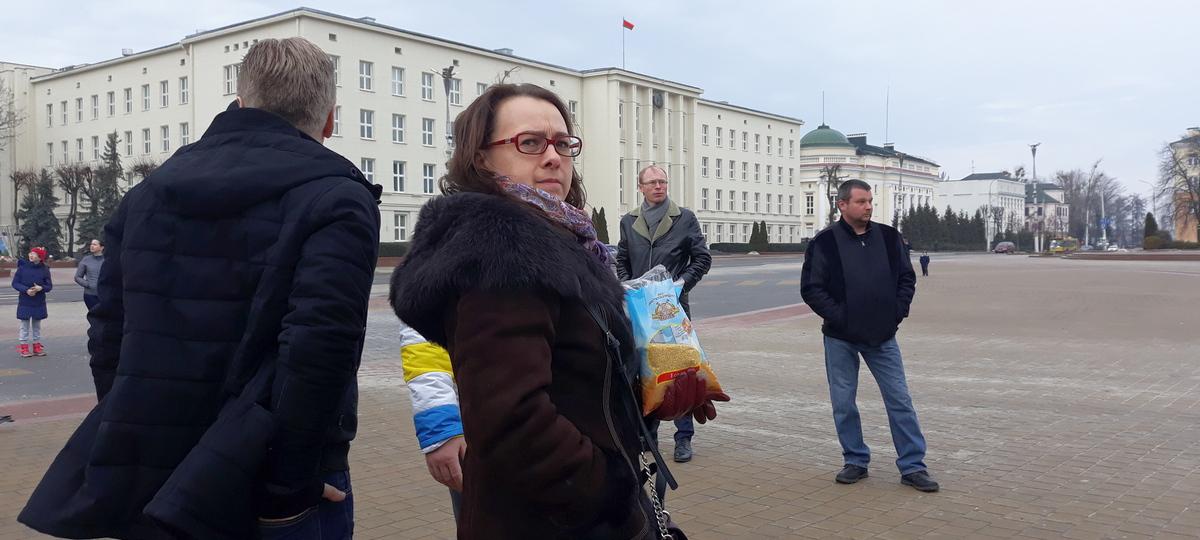 16.03.2020 14:29 Анна Канопацкая в Бресте на кормлении голубей. Источник фото