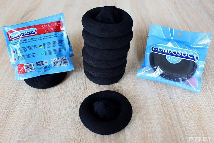 Продукту дали название «кондосок» (от англ. condom — презерватив и sock — носок), пишет tut.by. Каждый из них свернут в виде бублика и помещен в пластиковую упаковку. На этикетку нанесен QR-код, который ведет на видеоинструкцию о правильном использовании кондосока.