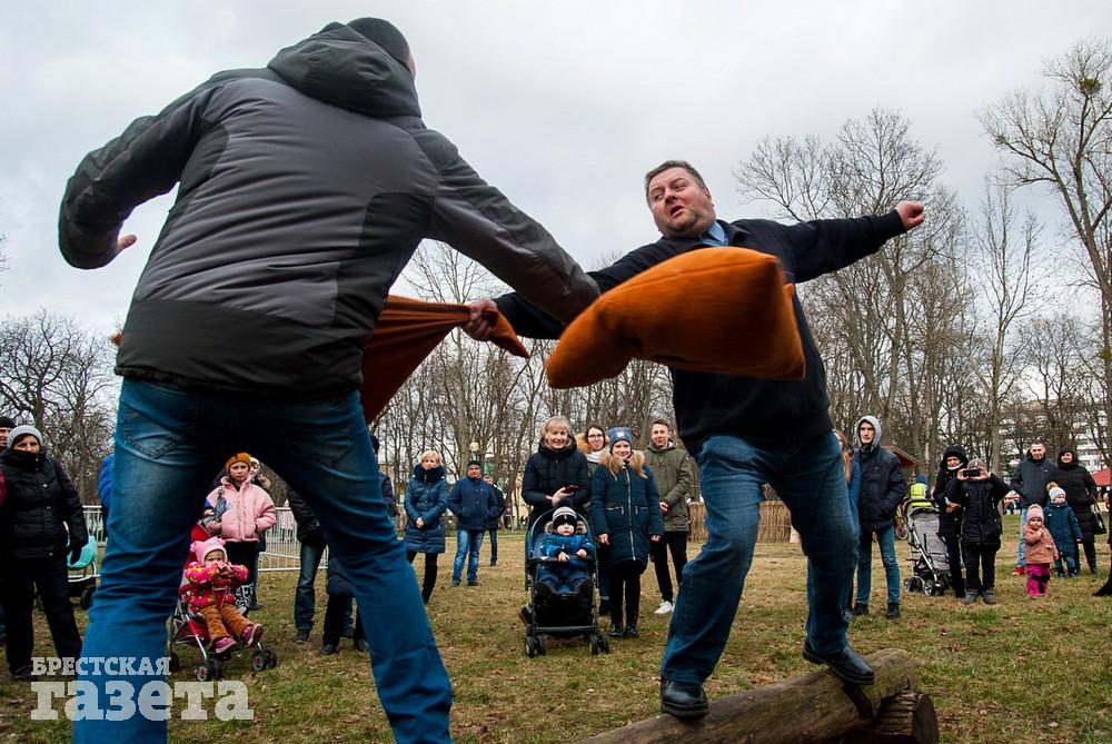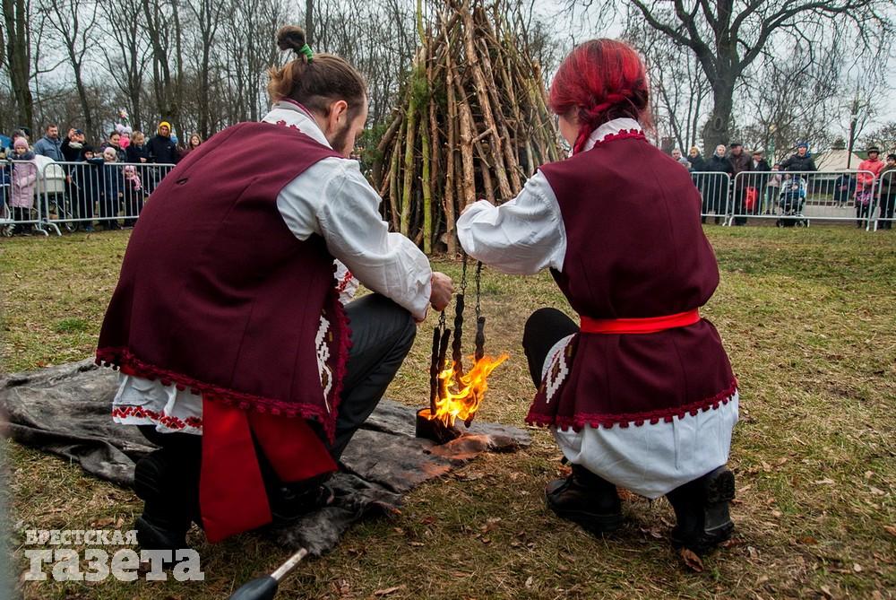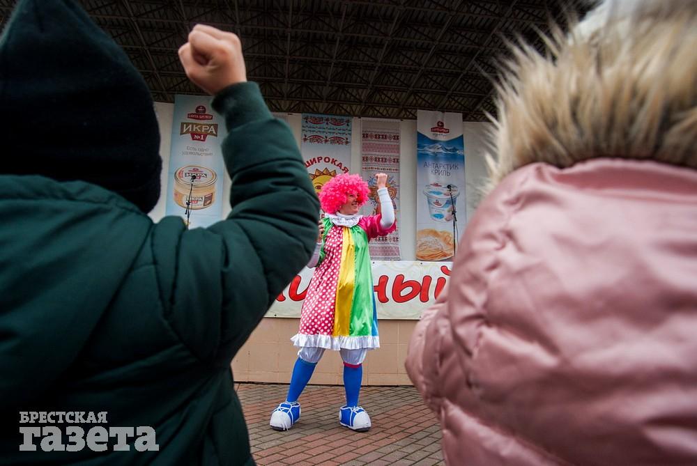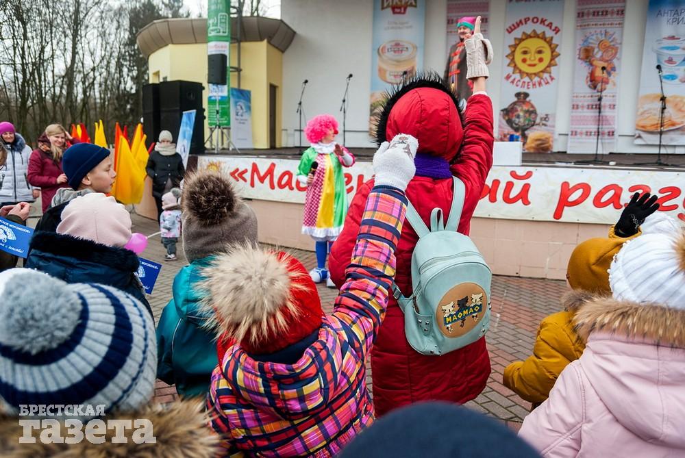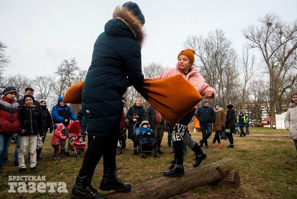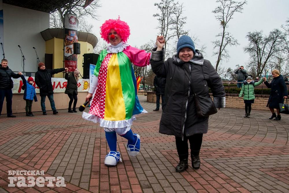 В Бресте веселые проводы зимы, по традиции, проходят, в городском парке культуры и отдыха. Правда, в этом году в наших краях климатическая зима так и не наступила. Вот и на Масленицу снег, выпавший с утра, растаял.