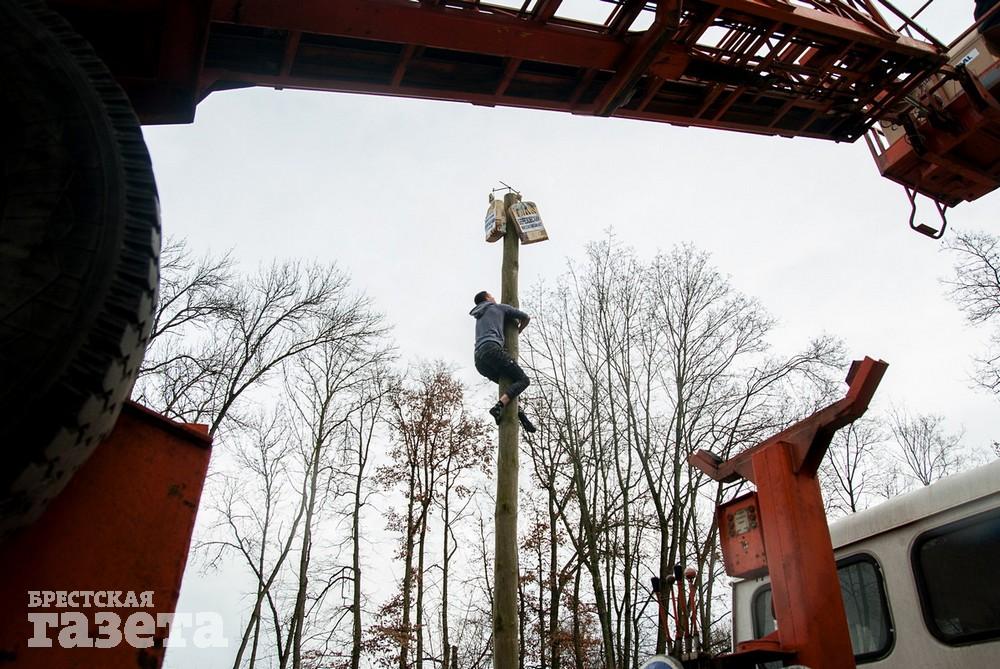 Людей в парке было мало – возможно, народ отдал предпочтение застолью в честь мужского праздника. А, может, погода — в Бресте 23 февраля то и дело шел довольно сильный дождь, аргументом не пойти гулять был и сильный ветер.
