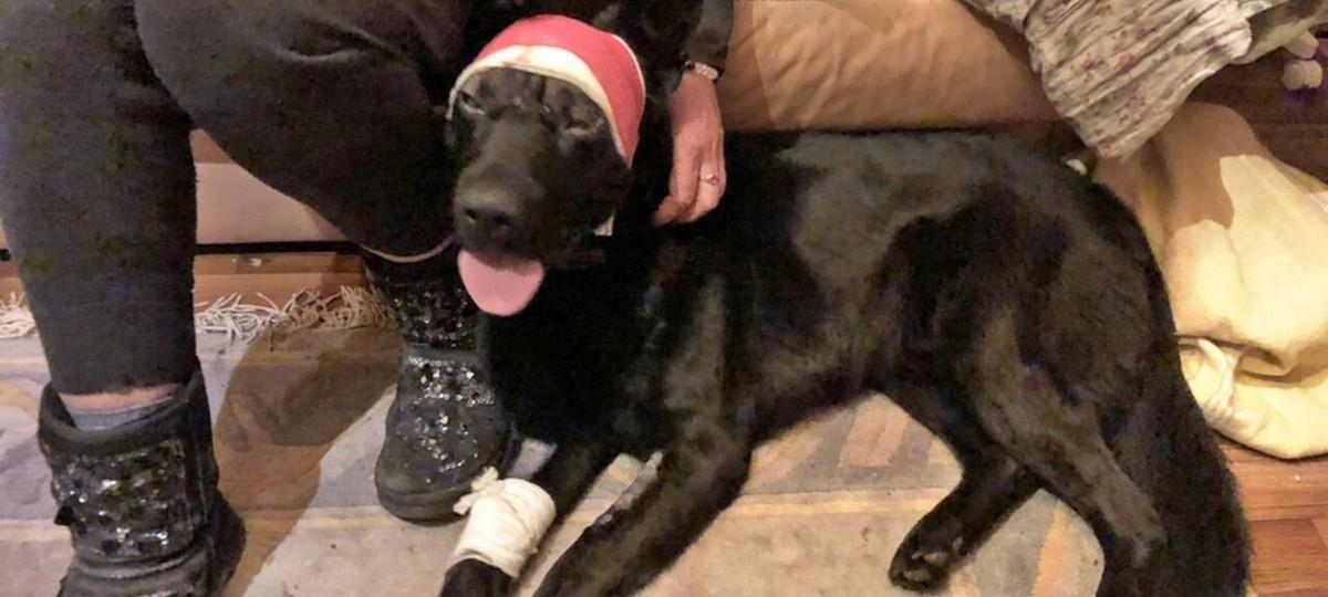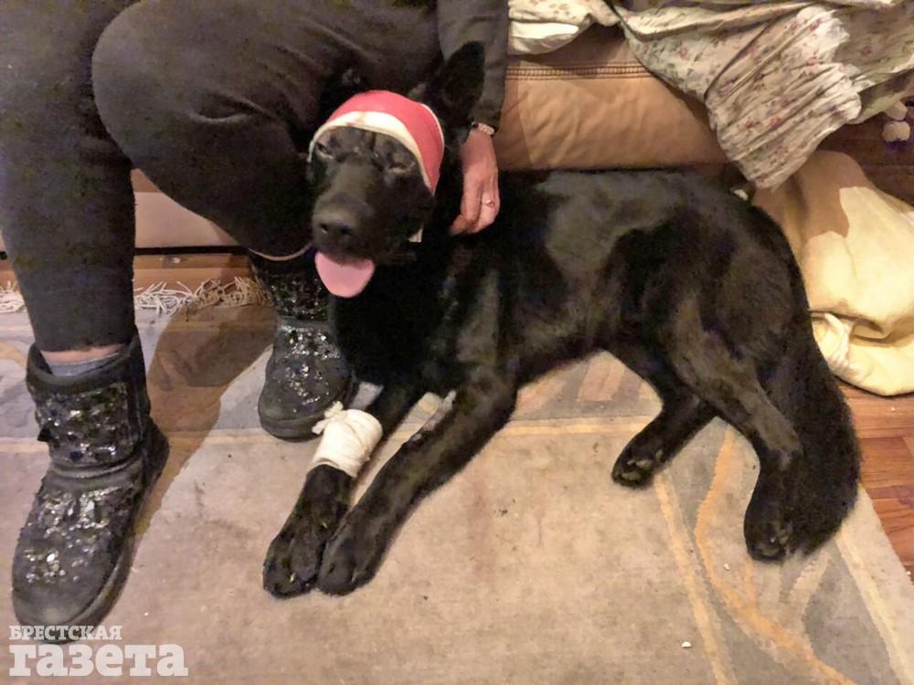 Чуть больше недели назад собака, которую жестоко избили в Ружанах, перенесла операцию на голову, а уже сегодня пытается самостоятельно гулять.