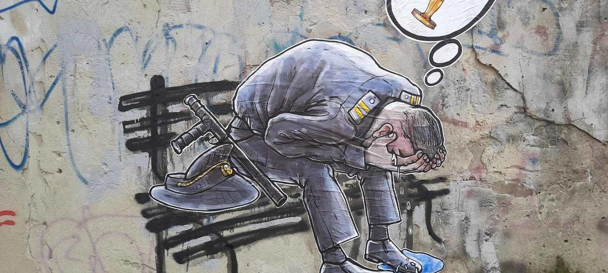 04.06.2020 15:39 Стрит-арт, на котором изображен плачущий милиционер. Фото: . Источник фото