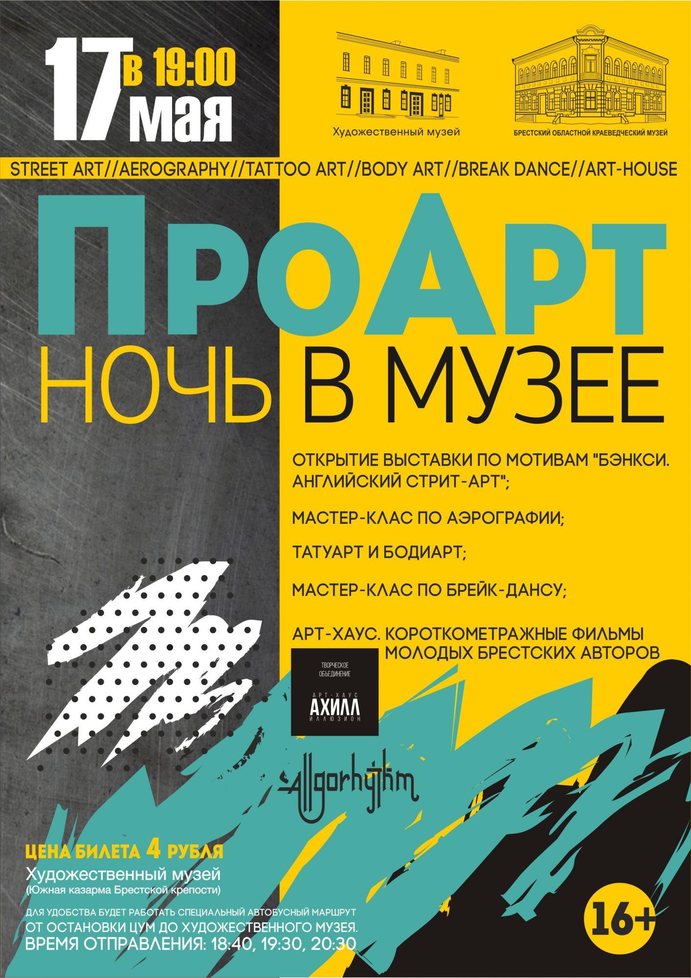 Кроме того, вас ожидает танцевальное шоу от брэйк-дансеров и философские беседы после просмотра короткометражных фильмов молодых и талантливых брестских авторов арт-хаус студии «Ахилл-Иллюзион» Михаила Гойко, Дмитрия Руславенко, Галины Терпицкой.
