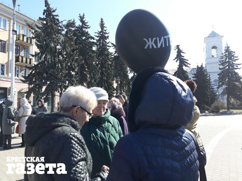 Сегодня в полдень 25 марта на площади Ленина в очередной раз собрались противники строительства аккумуляторного завода под Брестом. Люди по традиции покормили голубей, обсудили последние новости, спели гимн протестного движения – кавер «Жить», который впервые исполнили на площади неделю назад. Кроме того, в этот раз на площади раздали около 50 черных шаров со словом «Жить». «БГ» вела прямую трансляцию с площади Ленина.