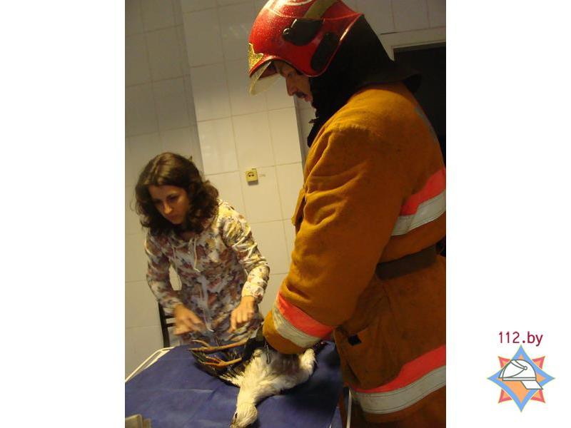 Прибывшие к месту вызова спасатели пожарной аварийно-спасательной части №1 Ляховичского РОЧС установили, что птица запуталась в шпагате, который использовала для изготовления своего жилища. Оценив ситуацию, спасатели поднялись к гнезду аиста и освободили его из «оков», передав в руки специалистов районной ветеринарной службы.