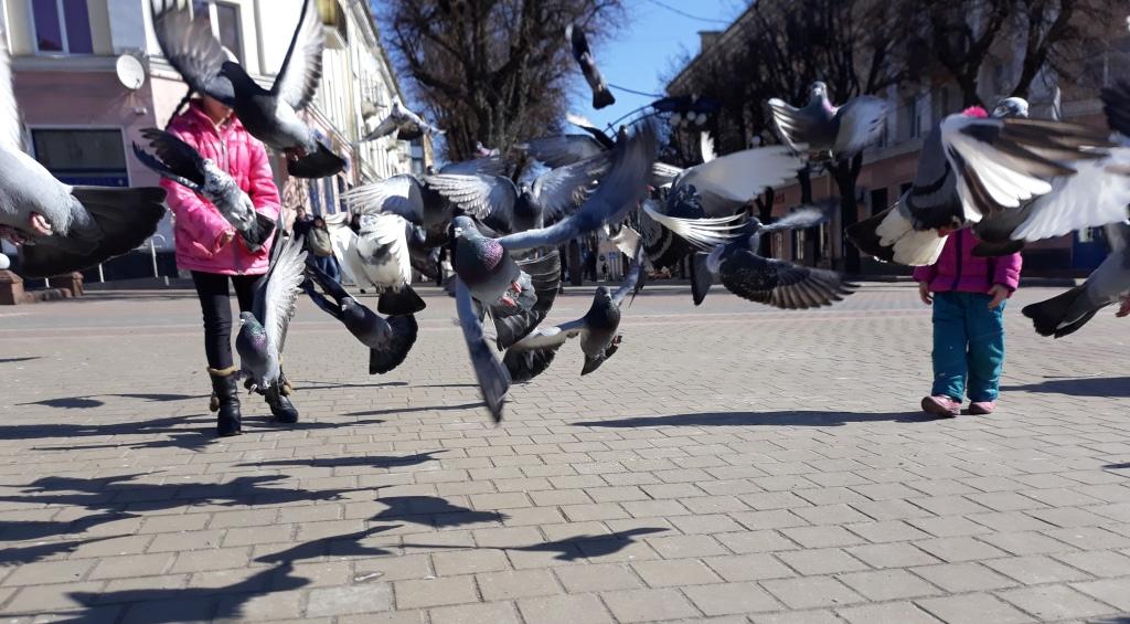 Днем 15 апреля количество людей, вышедших покормить голубей, составило более 80 человек.