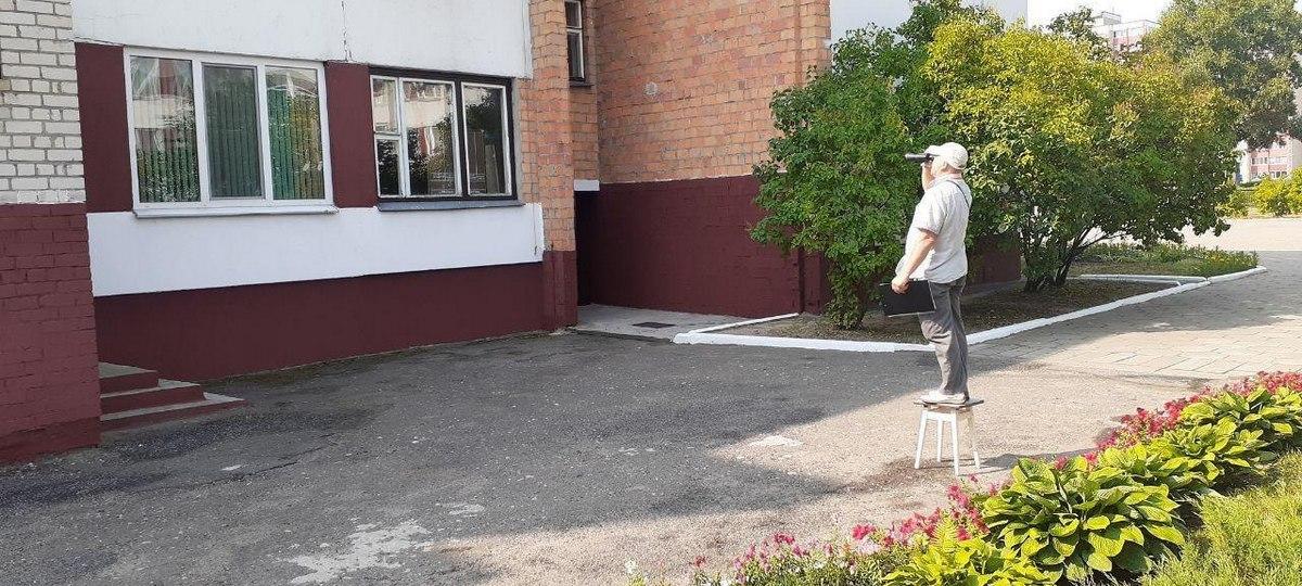 На следующий день находчивый наблюдатель снова здесь, у входа в школу. Оказалось, что мужчина с биноклем — это известный брестский активист Александр Сахарук. Недавно он выступал на пикете в поддержку Светланы Тихановской в Бресте. Александр Михайлович — рабочий в строительной компании, ветеран боевых действий на территории других государств и обладатель медали «За отвагу». Сейчас мужчина в отпуске. Это его четвертые выборы в качестве независимого наблюдателя. Он с радостью согласился поговорить с корреспондентом «Брестской газеты».