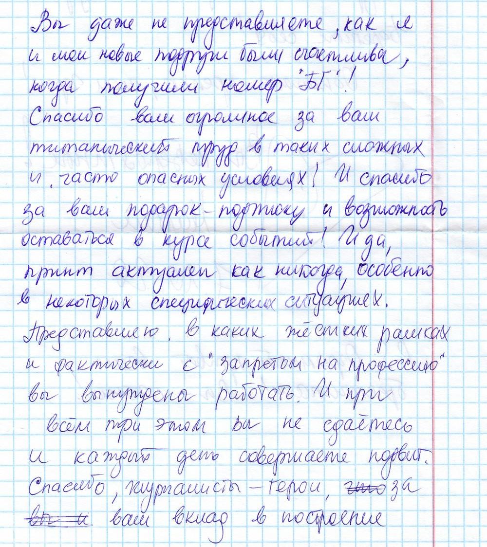 Спасибо вам огромное за ваш титанический труд в таких сложных и часто опасных условиях! И спасибо за ваш подарок – подписку и возможность оставаться в курсе событий! И да, принт актуален, как никогда, особенно в некоторых специфических ситуациях.