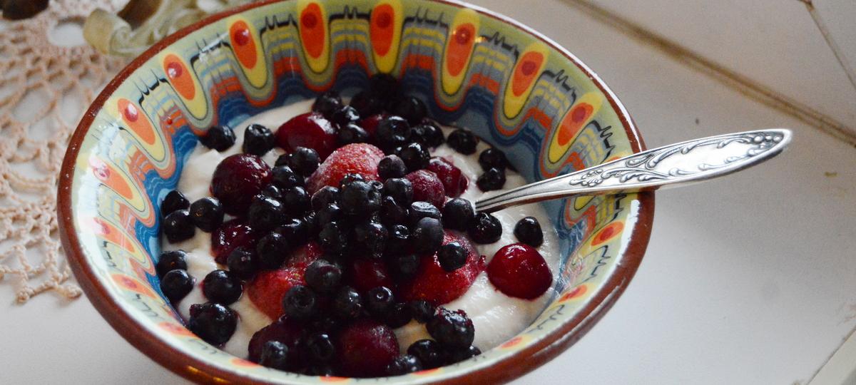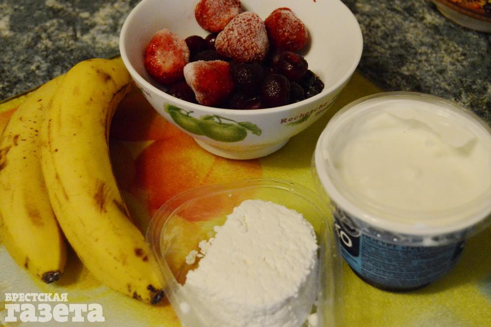 Надо (на 2 порции): 100 г творога, 2 спелых банана, 100 г греческого йогурта, 150 г замороженных ягод (клубника, вишня, черника и другие).