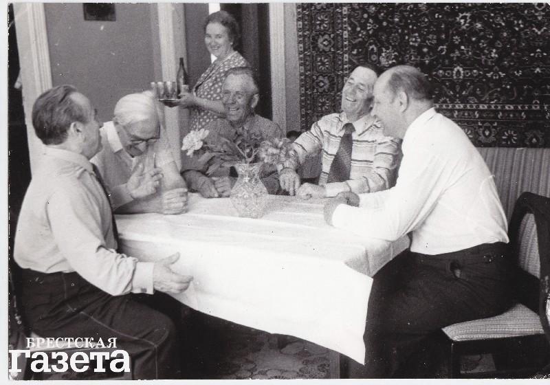 Вглядитесь в это фото. Кажется, ничего особенного: пятерых мужчин что-то рассмешило, у них на лицах улыбки. Кто они, для чего собрались, что их объединяет? Все эти люди — фронтовики. Собрались они в квартире Василия Афанасьевича Зотова, который жил на ул. Леваневского, 3 в Бресте. Да, именно в том доме, где сейчас находится Музей истории города.
