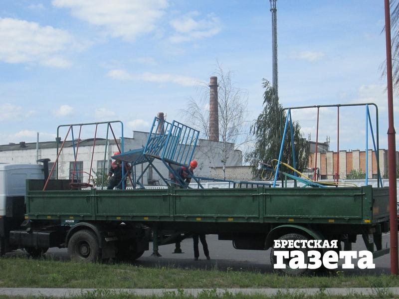 Первое же утро после Дня защиты детей не было добрым для маленьких брестчан и их родителей из микрорайона Березовка. По словам жильцов, 2 июня примерно в 11 часов на детской площадке дома №100А по ул. Мошенского появились какие-то люди и начали ее опустошать, буквально вырывая из земли все ее оборудование. А потом они сложили все в грузовики и трактор, чтобы вывезти со двора.