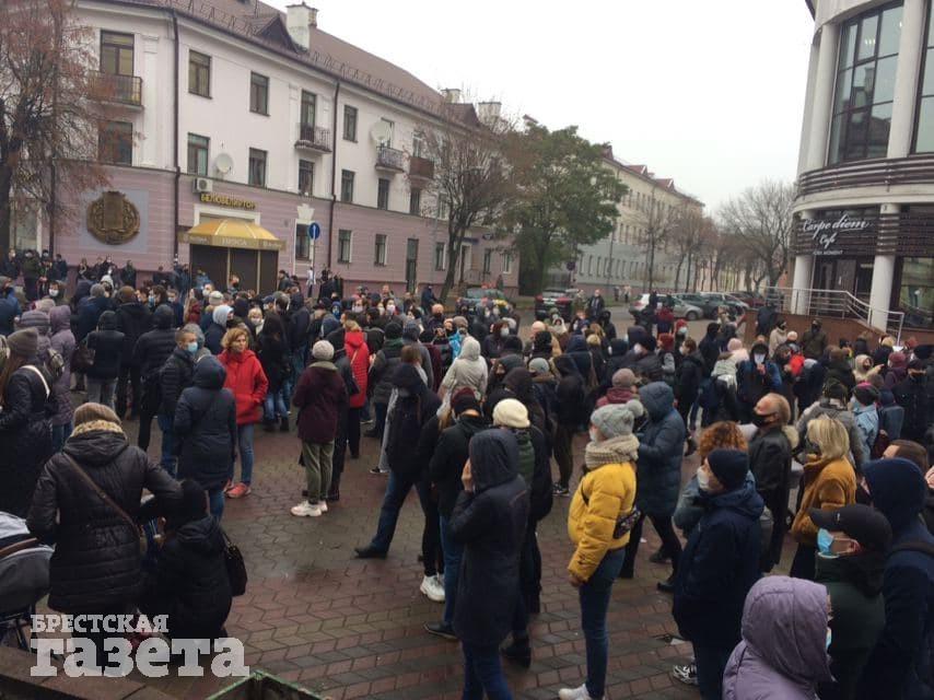 В Бресте на Советской собрались протестующие. Они скандируют «Жыве Беларусь!»