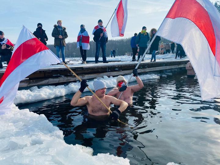 Белорусы Белостока провели акцию в поддержку белорусских журналистов и политических заключенных. Они также искупались в проруби, сделав это «в знак солидарности с теми, кто мерзнет на Окрестина», сообщает TUT.BY.