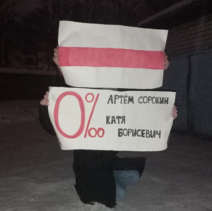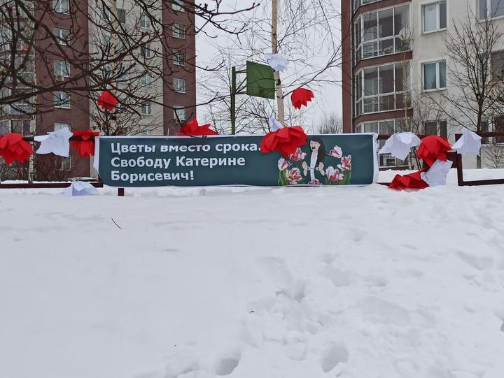 Такая композиция замечена в Михалово. Посвящена она Катерине Борисевич — журналистке TUT.BY, благодаря которой увидела свет статья, где со ссылкой на меддокументы указывалось, что в крови погибшего Романа Бондаренко с «Площади перемен» не было алкоголя, хотя об обратном публично говорили СК, представители Генпрокуратуры и Александр Лукашенко. Суд по ее делу еще не окончен.