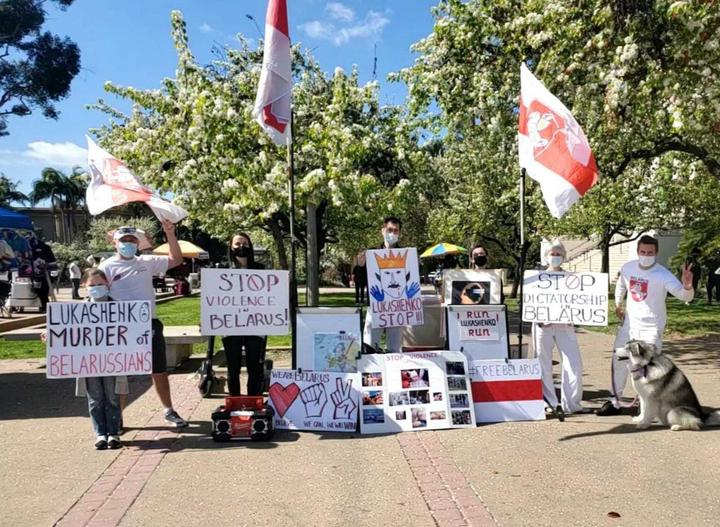 Акции солидарности с белорусами проходит и за пределами страны. Поддержать народ вышли в Сан-Диего (Калифорния, США).