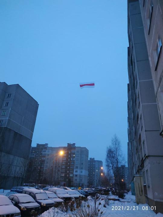На одном из домов в столичном микрорайоне Красный бор появился большой БЧБ-флаг.