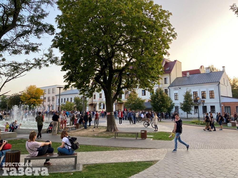 18.45. У памятника Тысячелетию люди сидят на лавочках. Возле кинотеатра на Советской тоже есть пару групп. Но пока тихо, сообщают журналисты, работающие в центре. У кинотеатра замечен заместитель начальника Ленинского РОВД Николай Самосюк.