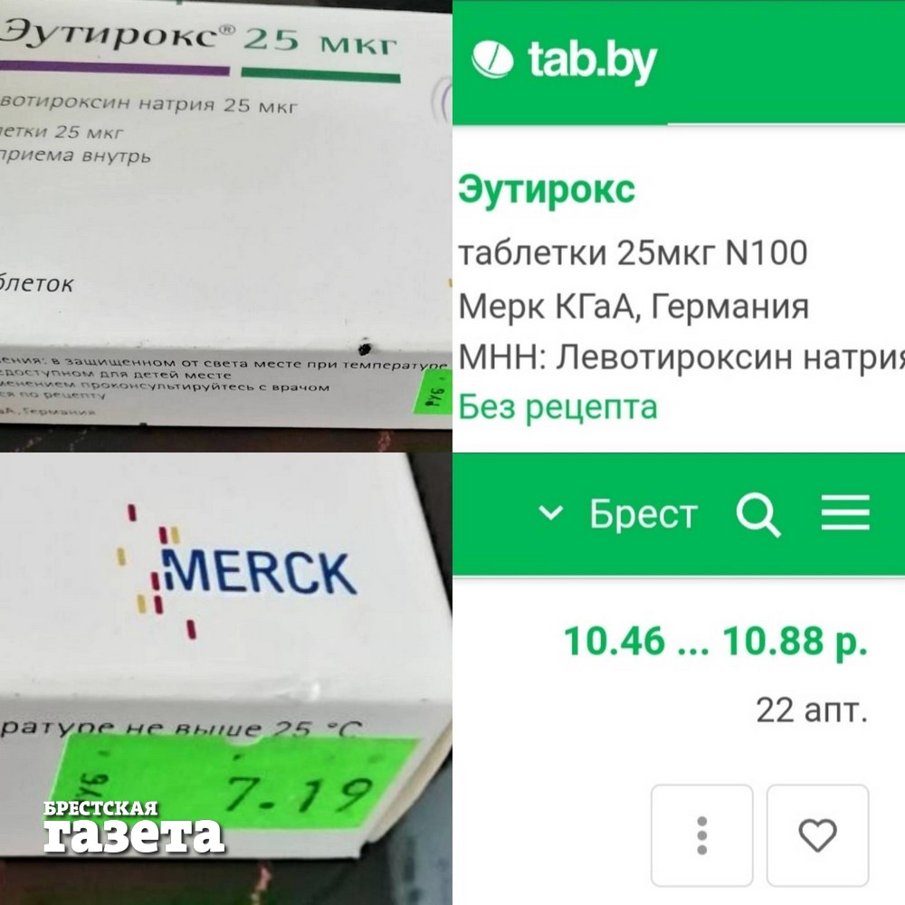 Брест эта волна аптечного ажиотажа не обошла стороной. У нас, как и в других регионах страны, в марте начали массово скупать препарат «Эутирокс» (гормон щитовидной железы). Люди стали жаловаться, что доступные раньше таблетки, купить практически невозможно.
