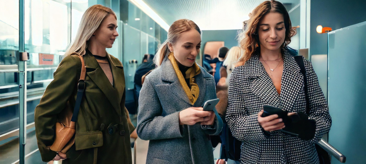 05.11.2024 06:17 Компания девушек проходят контроль на границе. Изображение сгенерировано в нейросети Adobe Firefly. Источник фото