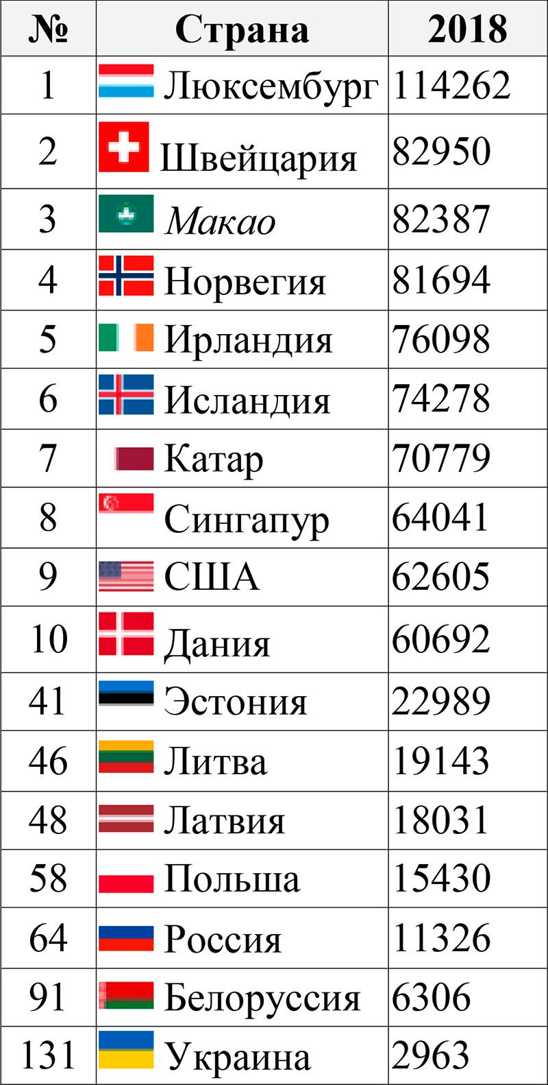 Список стран по номинальному ВВП на душу населения (МВФ. 2018 год)