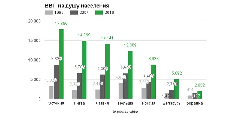 А теперь, собственно, к предложенной дилемме: либо в состав России, либо разруха и участь «санитарного кордона». При этом автор не счел нужным назвать хотя бы несколько очевидных плюсов, открывающихся перед белорусами после вхождения страны в состав России. Причина такого голословного подхода легко объяснима. Достаточно заглянуть в открытые источники. Статистика говорит не в пользу нефтегазовой империи. Если уж сравнивать, то «санитарный кордон» выглядит привлекательнее.