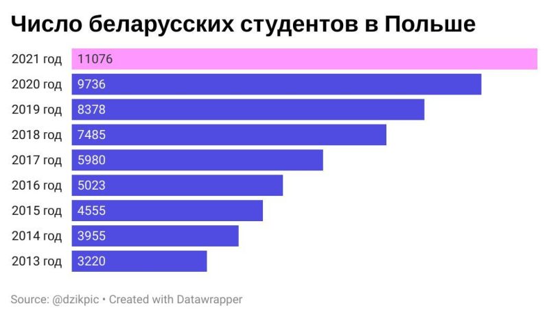 Если посмотреть в сборник главного информационно-аналитического центра Минобразования Беларуси, то в 2020-2021-м учебном году у нас училось всего 9 студентов из Польши. А в Польше училось более 11 тысяч студентов из Беларуси. Получается следующее: власти пытаются ограничить приезд для условных 9 человек в то время, как 11 тысяч свободно выезжали и планируют выехать в Польшу.