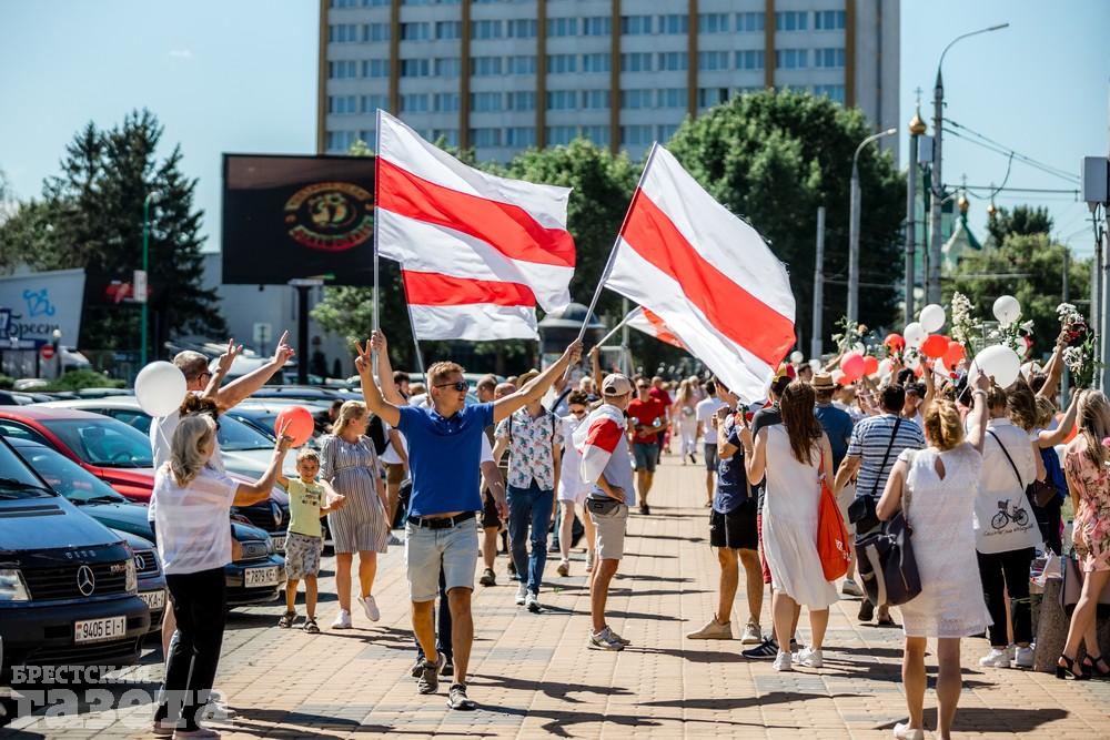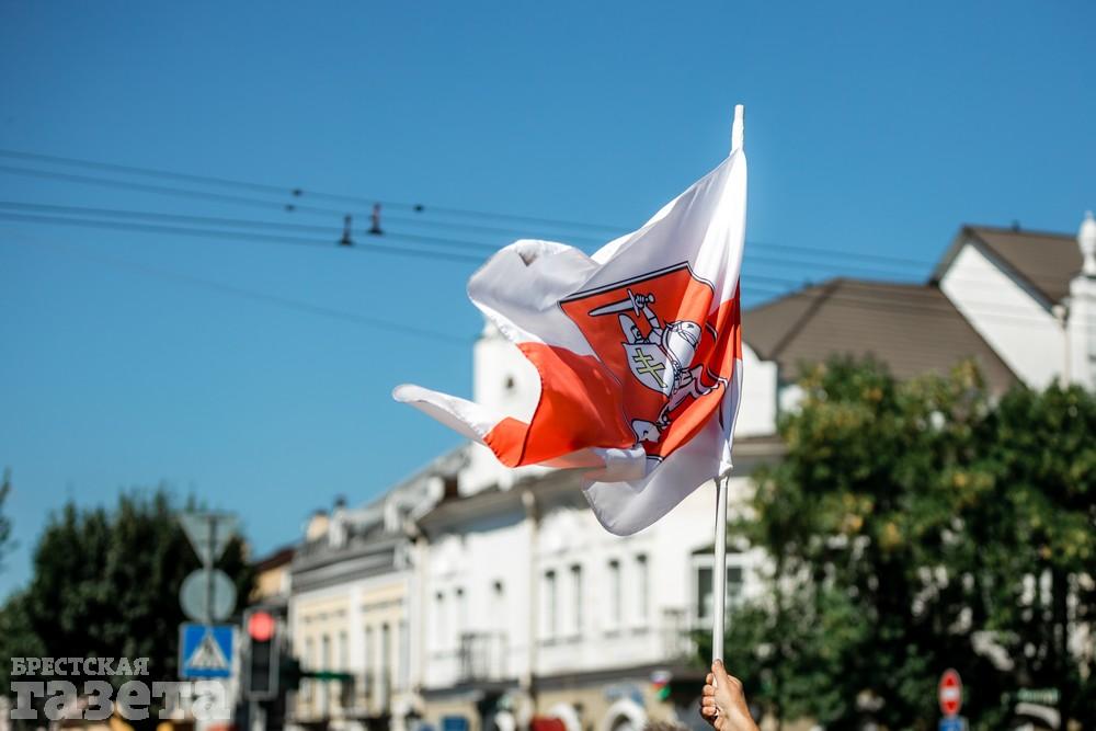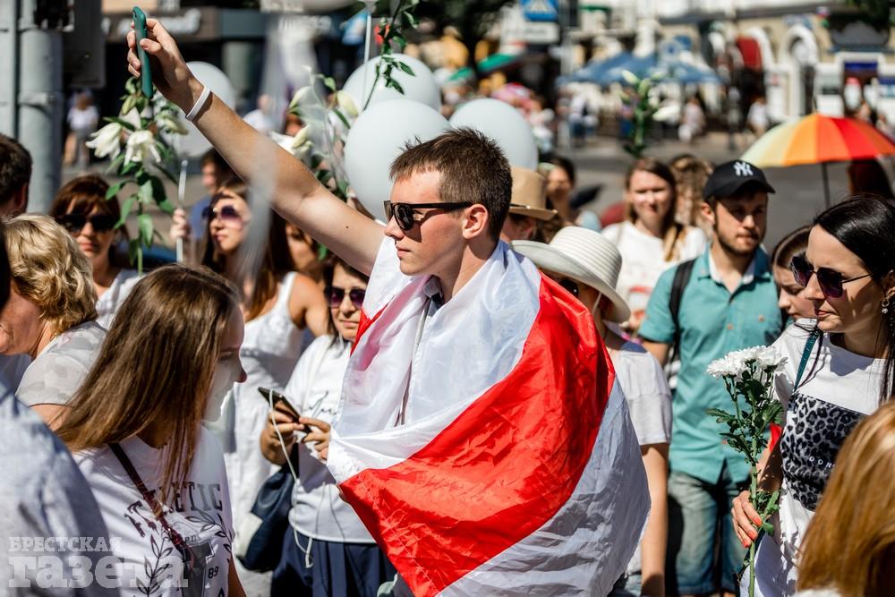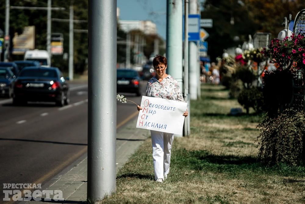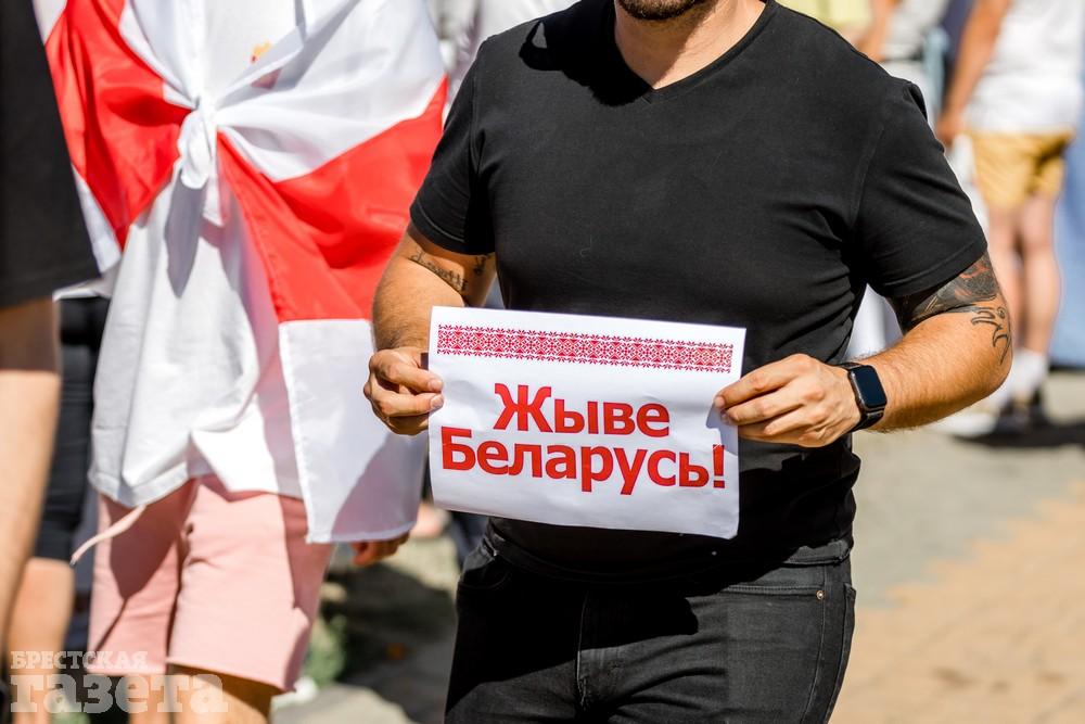 Некоторые протестующие пришли с плакатами: «Жыве Беларусь», «Освободите мир от насилия».