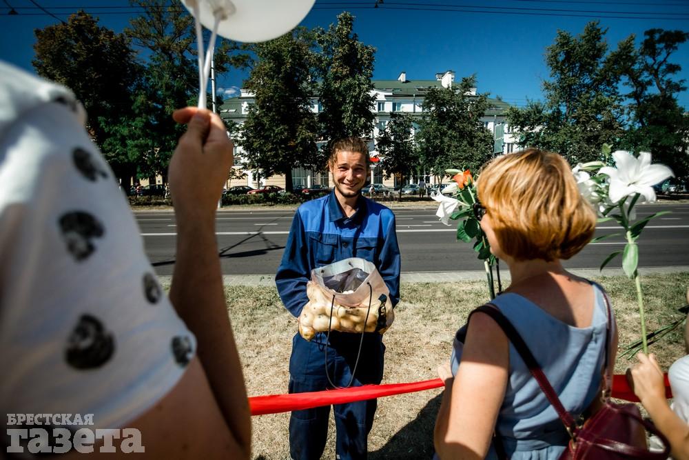 Неравнодушные мужчины подносили женщинам воду, дарили цветы и… картошку.
