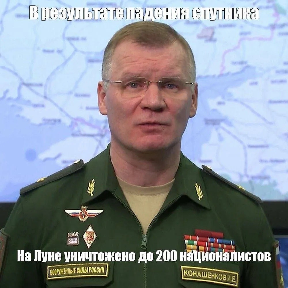 Также в сети предположили, что даже крушение космического аппарата россияне попытаются показать как очередную «победу». В мемах упомянули главное лицо Минобороны Россиия Игоря Конашенкова. Интернет-пользователи шутят, что он наверняка считает, что россияне уничтожили на Луне «базу украинских неонацистов».
