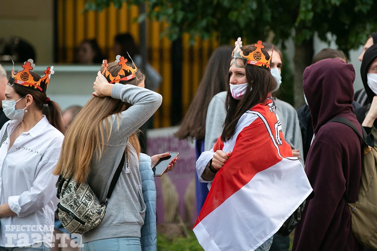 Некоторые брестчанки и брестчане надевали на себя короны.
