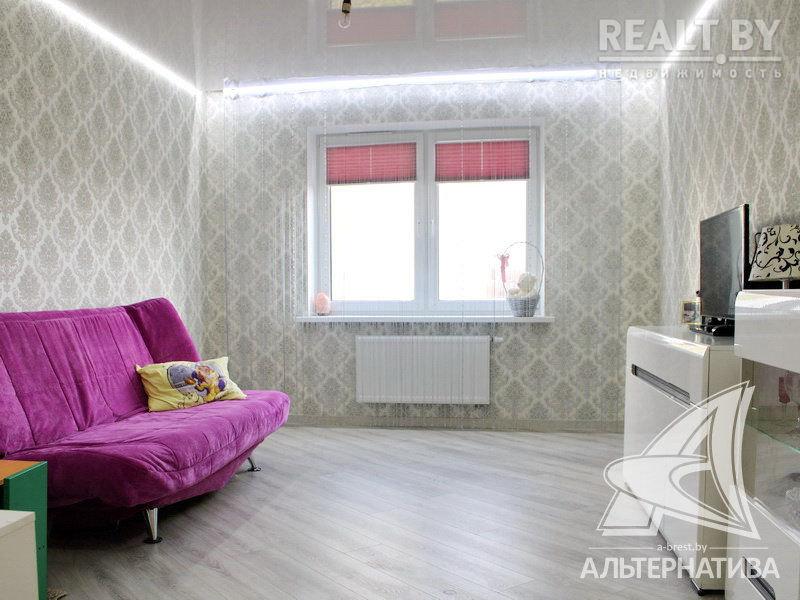 В квартире стоят стеклопакеты ПВХ, потолок – натяжной, стены оклеены обоями. Напольное покрытие в комнате — ламинат. Входная дверь — металлическая. В санузле положена современная керамическая плитка и установлена новая сантехника.