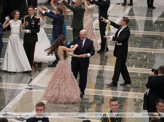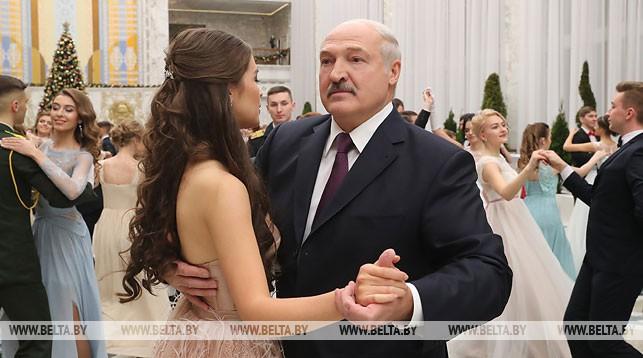 Президент Беларуси Александр Лукашенко сегодня на первом Республиканском новогоднем балу для молодежи во Дворце Независимости танцевал вальс с «Мисс Беларусь — 2018» Марией Василевич, передает БелТА.