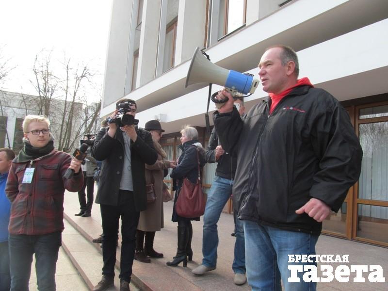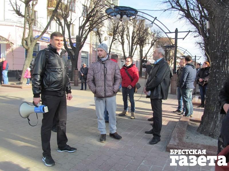 Пришли на площадь лидер областной организации ОГП Владимир Вуек и координатор предыдущей акции протеста березовский активист Александр Кабанов, которого на уходящей неделе не раз вызывали в милицию.