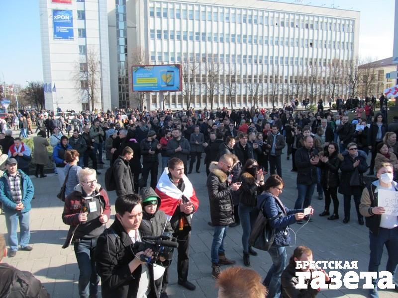 Народ собирается идти по улице Советской к ЦУМу. Лидер анархистов приглашает приехать в Минск 25 марта на День Воли. Его поддерживают. Люди договариваются в следующее воскресенье собраться перед горисполкомом в Бресте. Ждут тех, кто в зале.