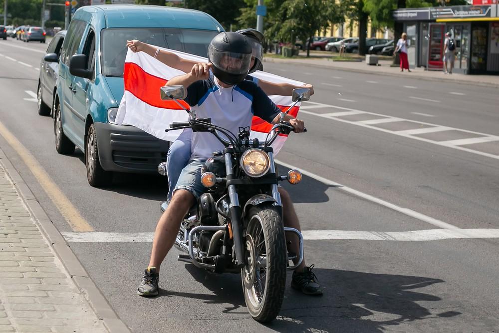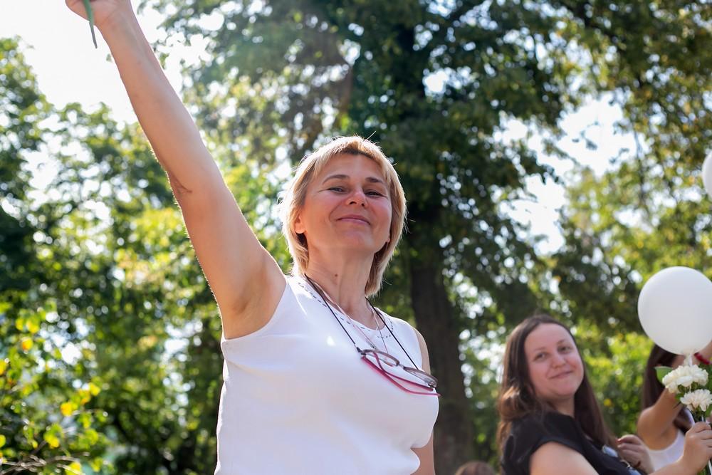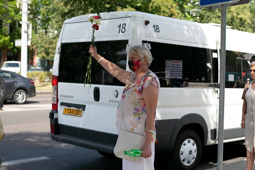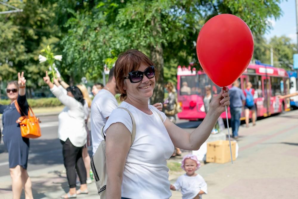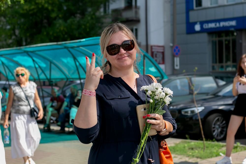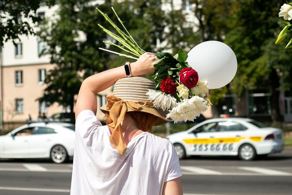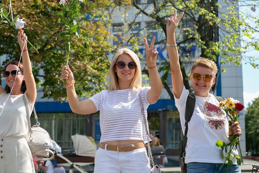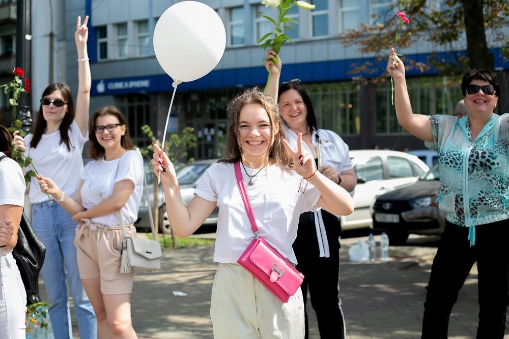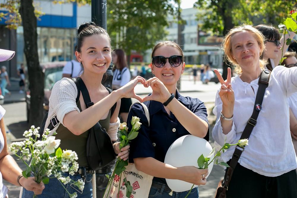 Женщины выстроились вдоль проспекта Машерова от улицы Ленина до Кобринского моста с мирной акцией несогласия в пятницу 14 августа в Бресте.