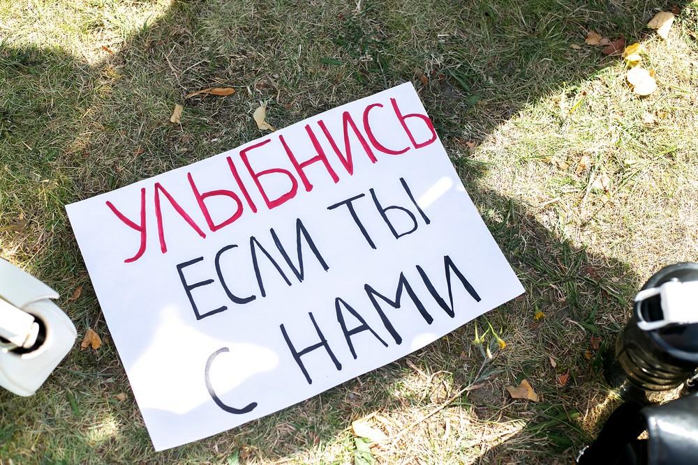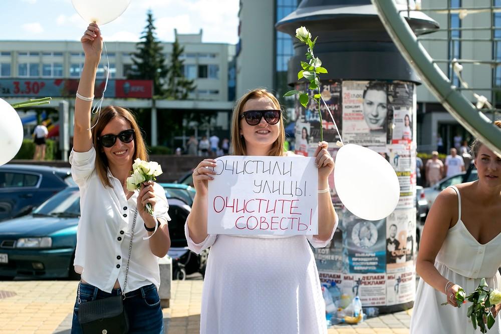 Как и ранее в руках у многих цветы, белые или красные воздушные шары, плакаты с мирными лозунгами: «Остановите насилие», «Мы не овцы», «На самом деле нас еще больше», «Очистили улицы — очистите совесть». Им сигналили проезжающие автомобили.