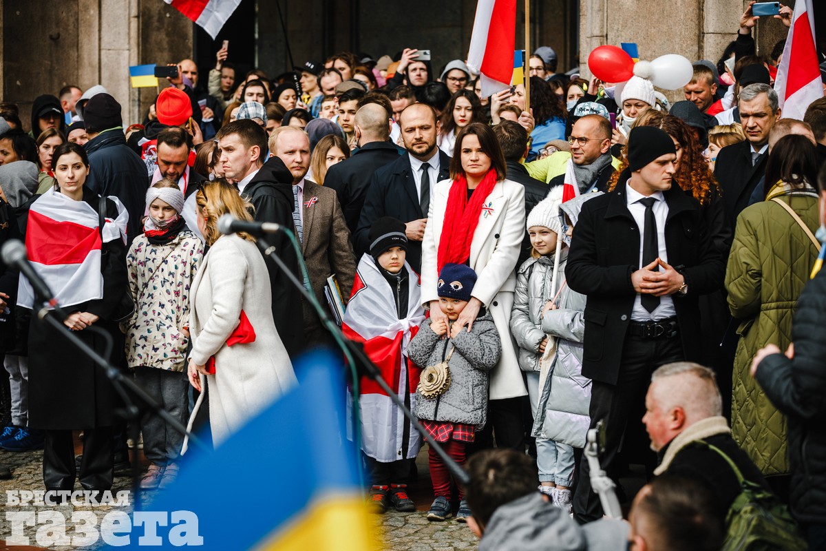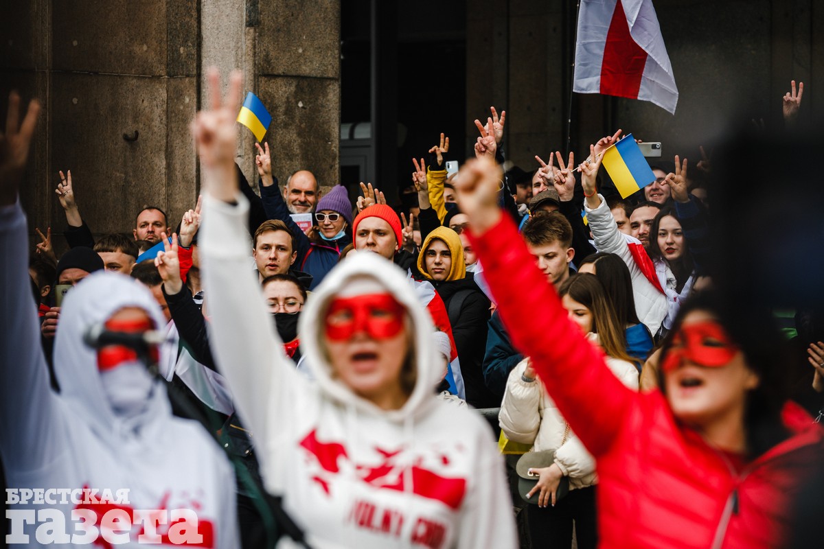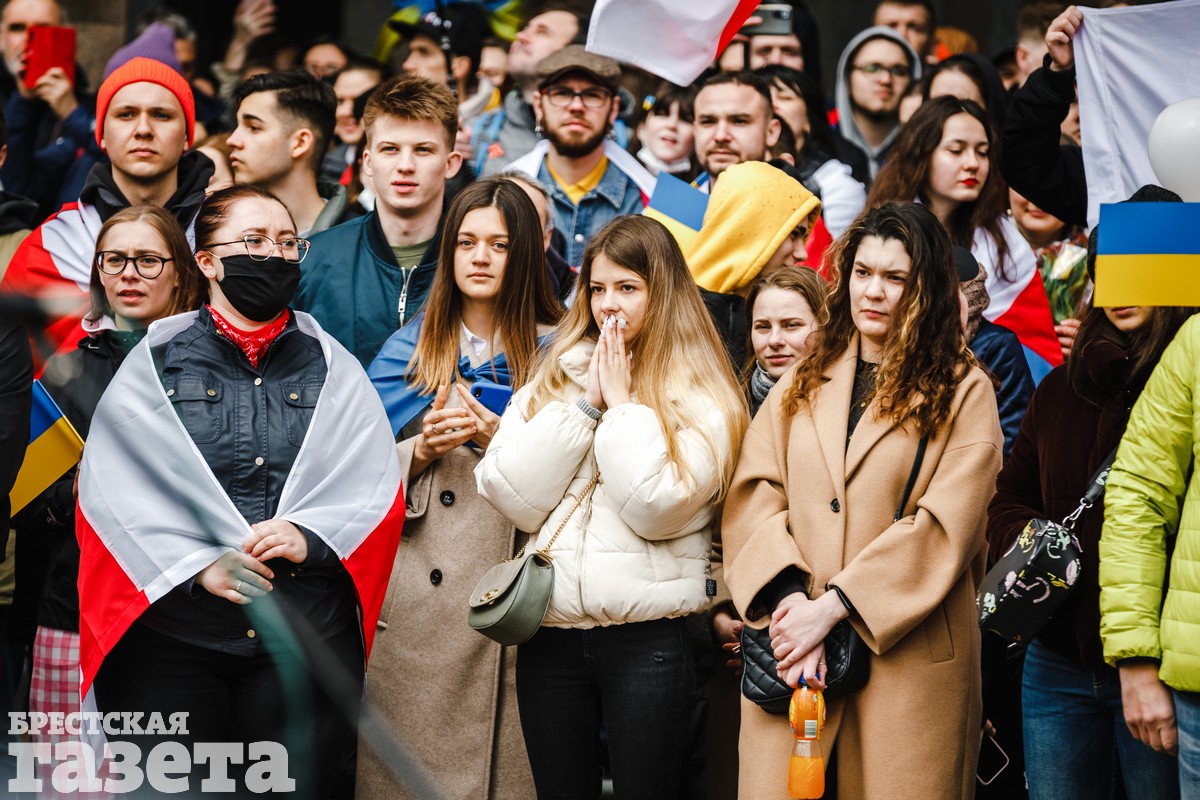 Акция проходила под лозунгом «Белорусы солидарны с Украиной». «Мы громко заявляем, что белорусы против войны в Украине. Еще раз заявим: Лукашенко и Путин — диктаторы, которых не поддерживает белорусский народ!»,- говорили накануне организаторы.